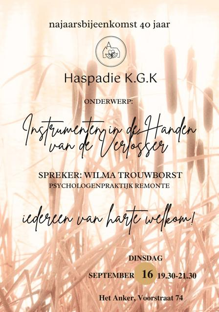Dinsdag 16 september is de najaarslezing van Haspadie; aanvang 19.30 in Het Anker, Voorstraat. Vrijwilligers én belangstellenden van harte uitgenodigd om hier bij te zijn! In het kader van het 40 jarig jubileum een extra warm welkom voor oud vrijwilligers en anderen die de afgelopen 40 jaar bij Haspadie betrokken waren! Het thema van de lezing is: